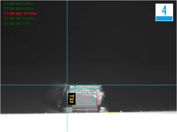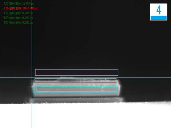 側(cè)面檢測不良品效果分析圖(發(fā)亮、尺寸):NG
