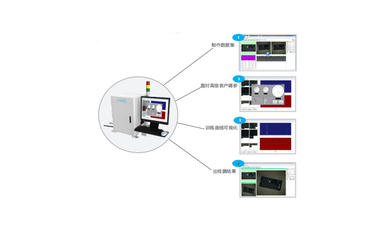 選型適配場景,避免 “盲目跟風(fēng)”:根據(jù)檢測需求選擇合適的算法模型,如檢測尺寸、位置等 “定量指標(biāo)”,優(yōu)先選擇傳統(tǒng)機(jī)器視覺算法(如邊緣檢測、模板匹配,速度快、穩(wěn)定性高);檢測復(fù)雜缺陷(如不規(guī)則表面凹陷、紋理缺陷),可采用深度學(xué)習(xí)算法(如 CNN 卷積神經(jīng)網(wǎng)絡(luò),需更多數(shù)據(jù)訓(xùn)練,但泛化能力強(qiáng));若企業(yè)無算法開發(fā)能力,可選擇成熟的可視化軟件平臺(tái)(如 Halcon、VisionPro),通過 “拖拽式操作” 搭建檢測流程,降低技術(shù)門檻。